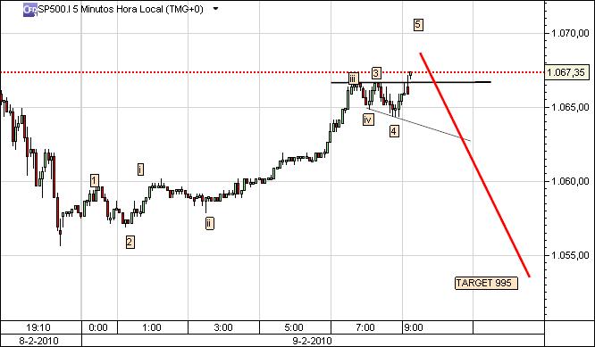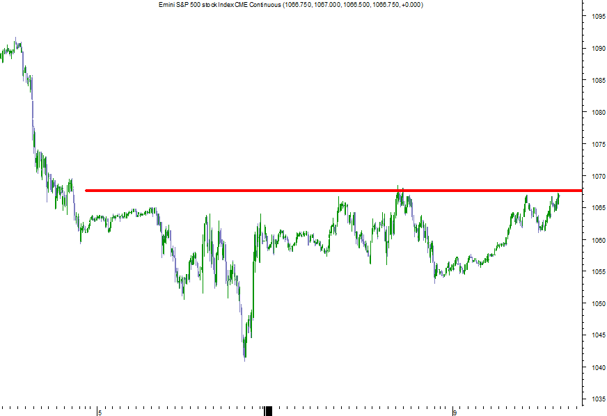 Ainda antes da abertura da sessão regular o ES já está mesmo em cima da resistência, nos 1066.5.