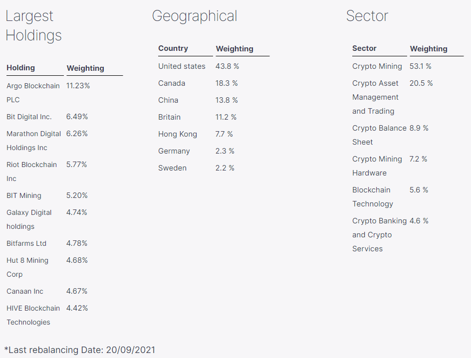 Ricarmag, Bom ETF mas que tem uma posição desmesurada para Argo (crescimento lento e com equipamentos antiquados), esquece-se da CleanSpark (logo a 2ª de que gosto mais) e tem 2 crypto miners chineses (Canaan e BTCM) que não aprecio, porque estão a recomeçar do zero no Cana´dá e USA. Existem já 6 ETF's com posições em crypto miners (o melhor é o da Van Heck crypto miners holdings)