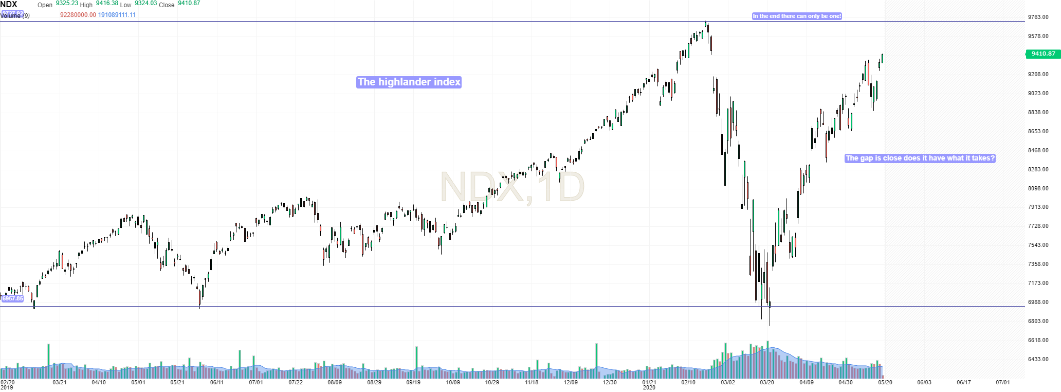 Ficou a um punhado de pontos de fechar o gap. Realmente é um absurdo esta recuperação do NASDAQ100.