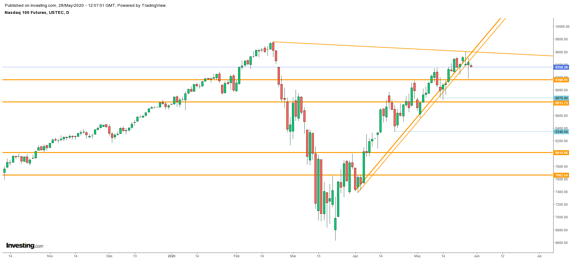 zurcar Escreveu:Relativamente ao NASDAQ 100, temos um canal assinalado no gráfico.