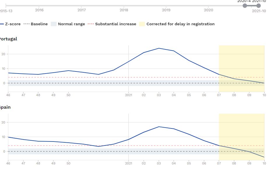 Olhando para a curva de casos e de excesso de mortalidade ves que aconteceu exactamente o mesmo em Portugal e Espanha, ao contrario do que dizias.