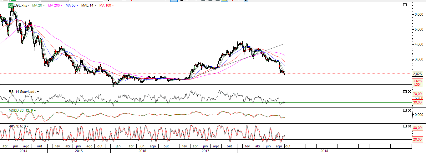 Olho para o gráfico e a única coisa que vejo é uma marcada tendência descendente desde os 4 euros , com desvalorização já de 50% desde o inicio da queda , e nesta zona continua sem NENHUM sinal de inversão técnica .