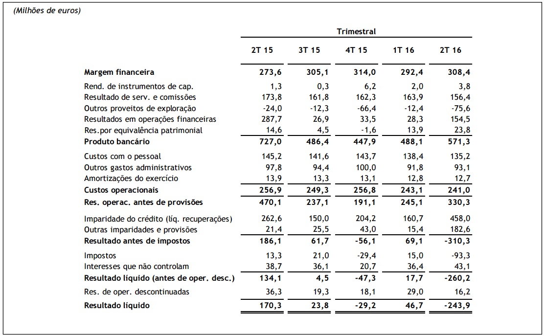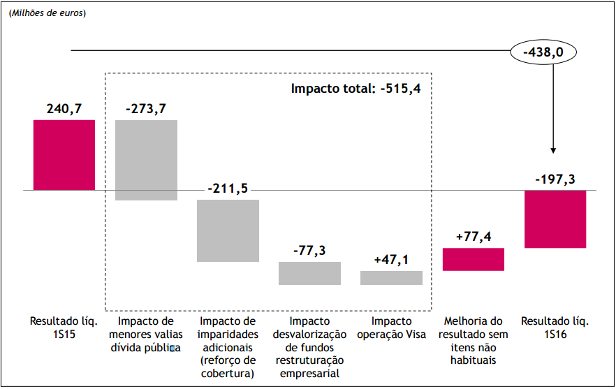 "Descontando este impacto, o resultado li´quido teria sido positivo em 56,2 milho~es de euros no primeiro semestre de 2016, comparando com um prejui´zo de 21,2 milho~es de euros relevado em igual peri´odo de 2015".