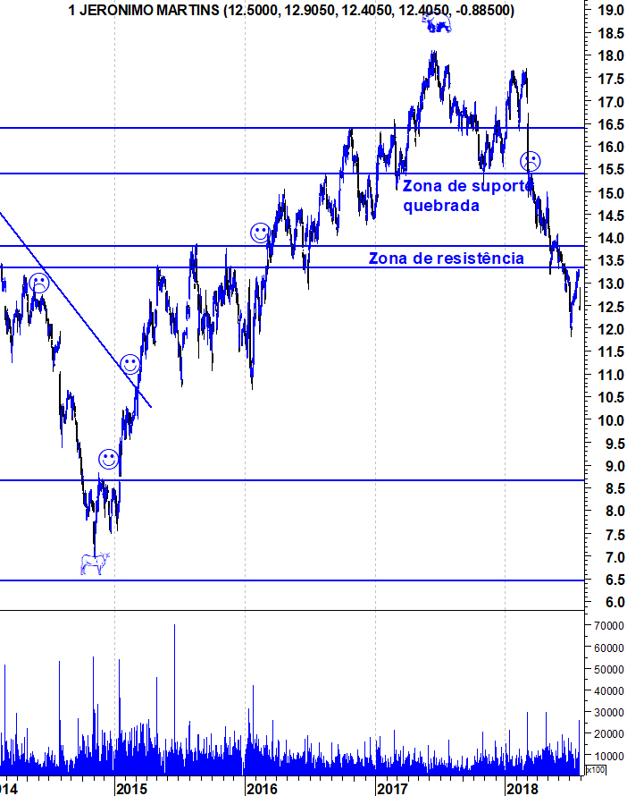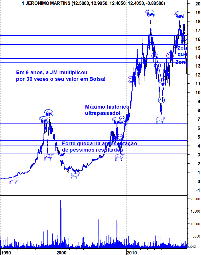 A diferença é que a Carrefour estava em mínimos históricos e JMT e SON muito longe disso