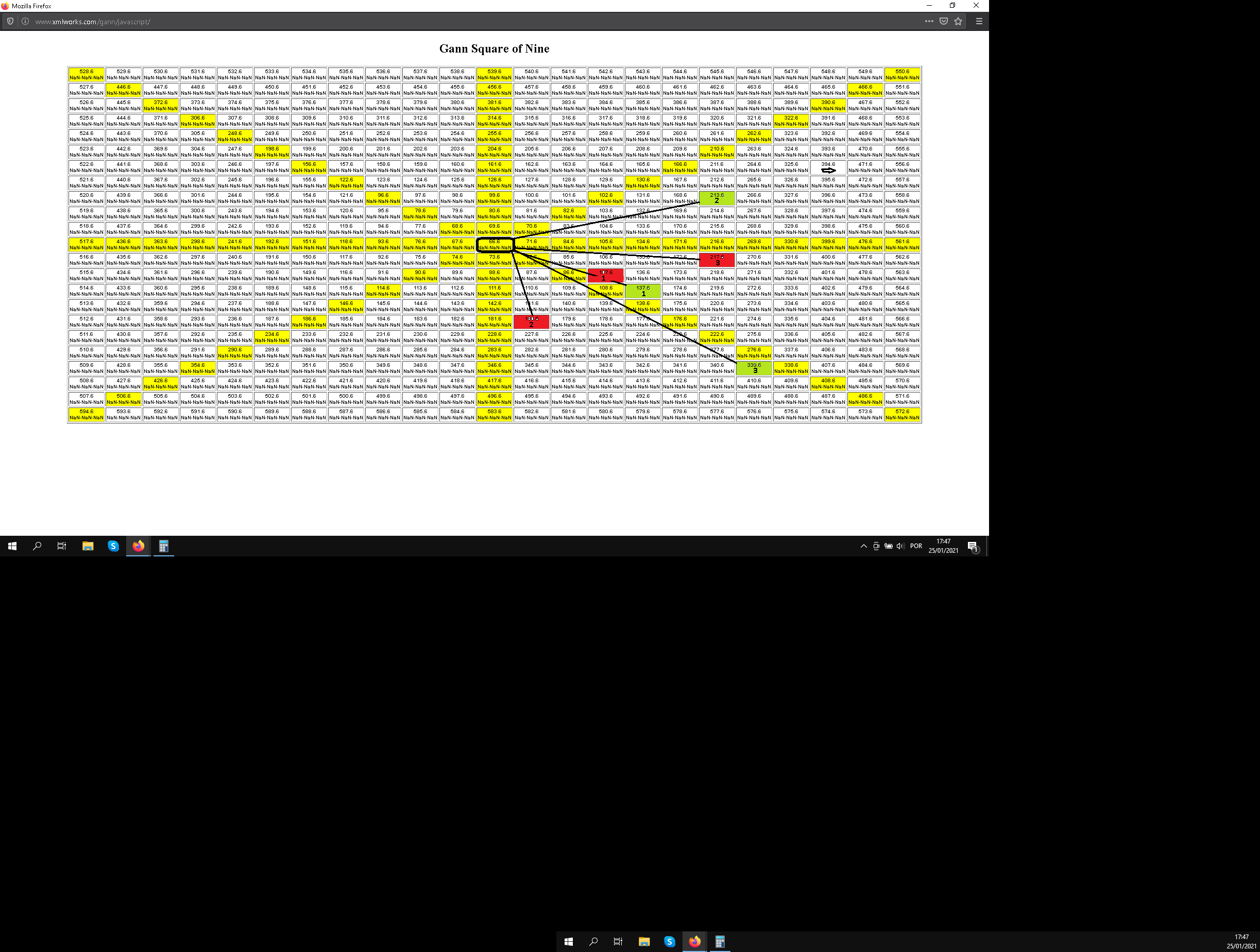 Docinho não te consigo ajudar muito, GANN está fora do meu campo de domínio mas esse valor representa o topo do canal ascendente - diário.