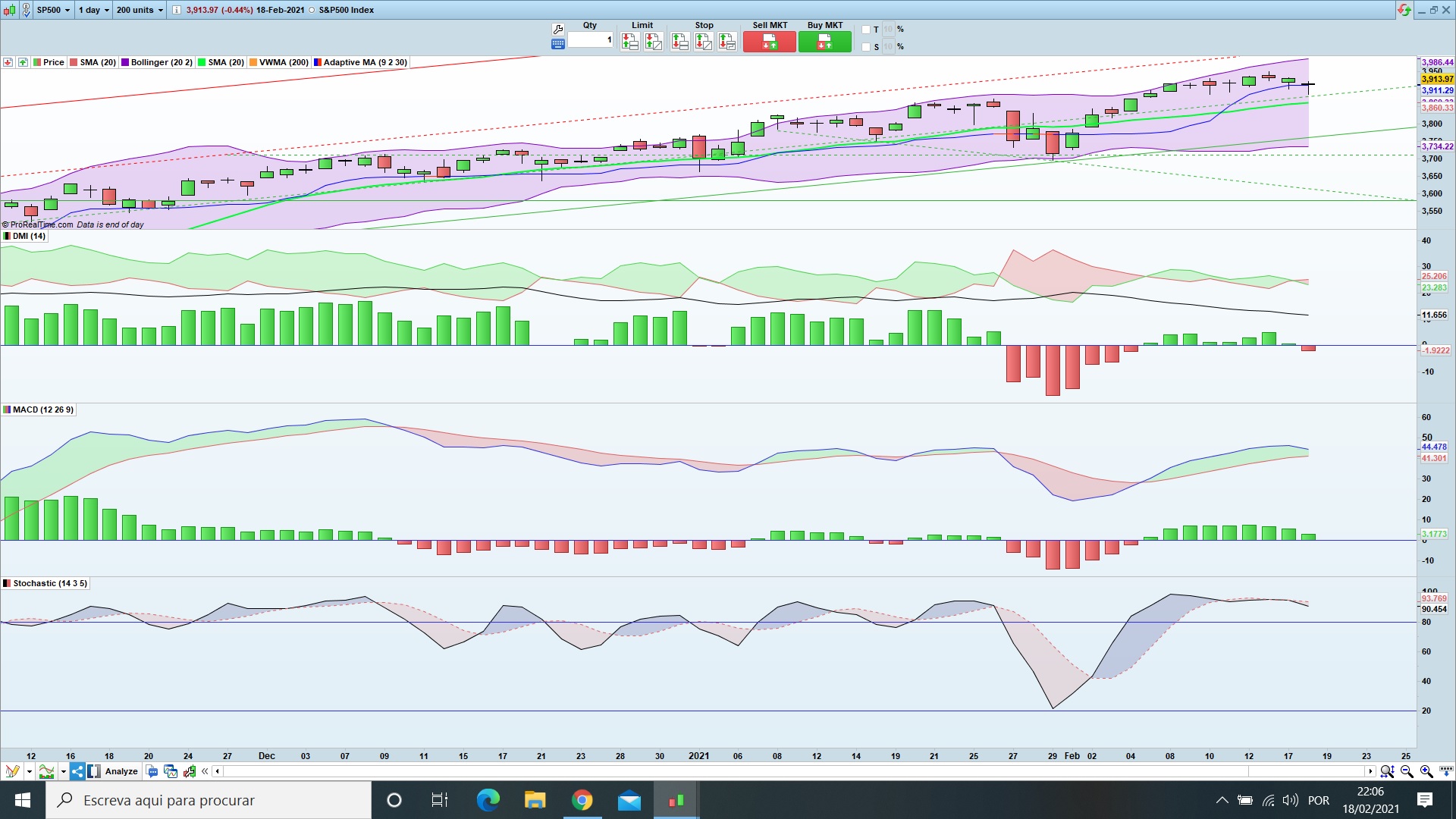 Os índices americanos continuam inequivocamente bullish, para mim, ficaria mais descansado se o índice lateralizasse uns tempos, mas as bolhas não trabalham assim..