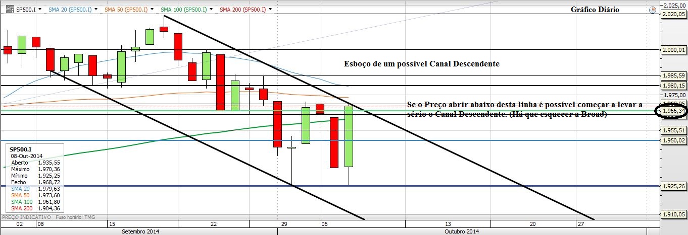 Esquecida que está a Broad, o Canal Descendente (ainda muito pseudo-canal) poderá ser a próxima figura no Índice. Se o Preço no cash abrir abaixo da linha superior do pseudo-canal e se por lá se aguentar poderemos ter um caminho mais definido e talvez uma nova tendência. Fechei o Longo de ontem e abri o primeiro Curto. Se se confirmar a tendência aumento a exposição para aquela que tinha nos anteriores Curtos e no Longo de ontem. Para já, e mesmo que o cenário Curto se venha a inverter, só entro novamente Longo com um fecho acima dos 1980.