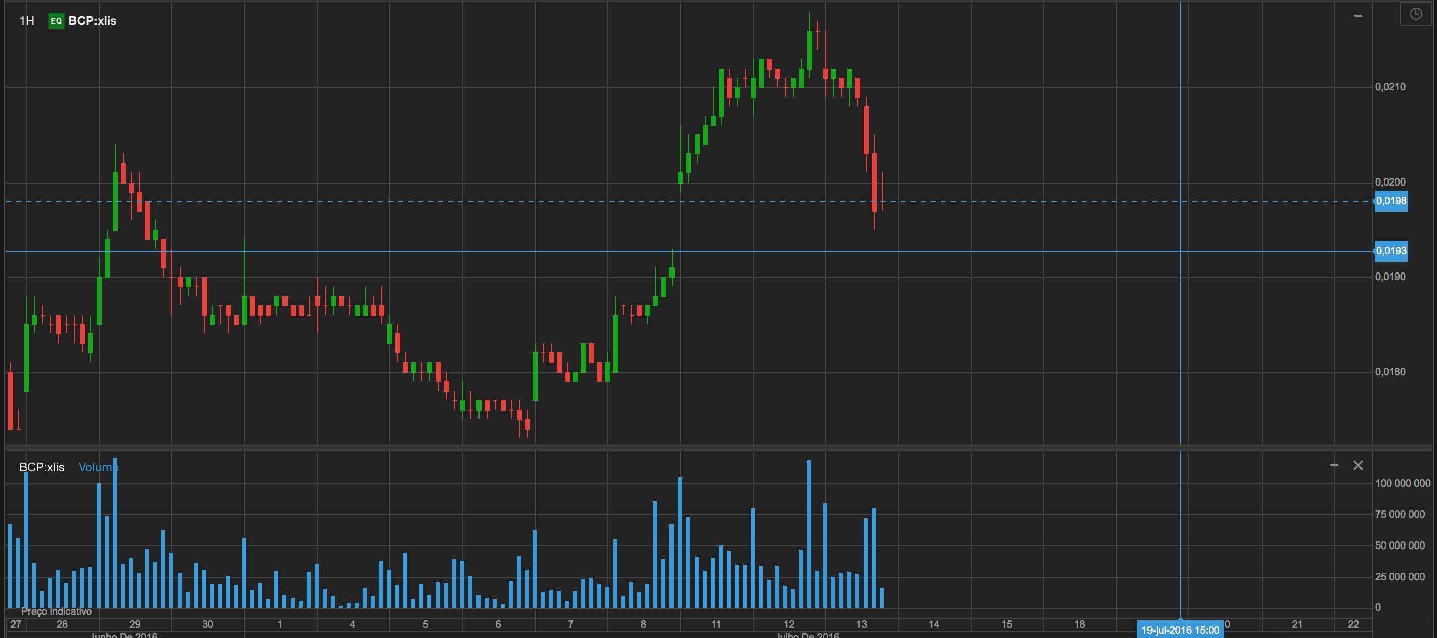 Para já vamos ver se vai visitar o nivel dos 0,0180 ou se tenta manter-se acima dos 0,02.