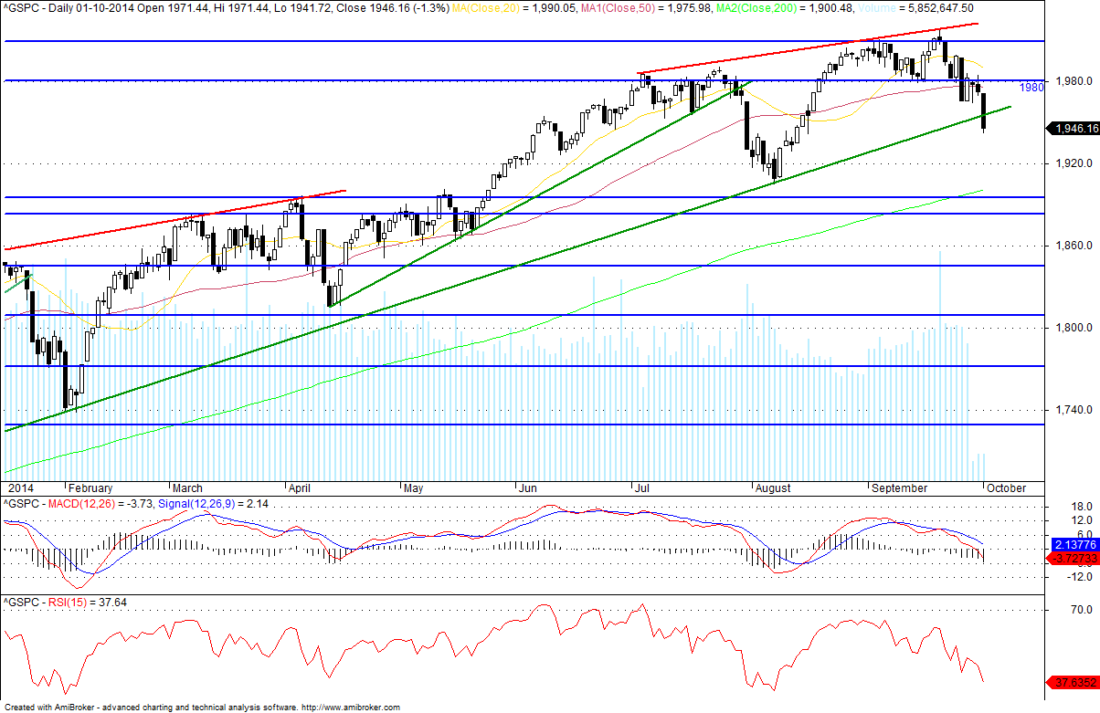 Enquanto tal não acontecer e não confirmar inversão, isto não passa de uma saudável correcção (num cenário negativo, bear market só se materializa com quedas acumuladas superiores a 20% num periodo longo ou curto mas graficamente em continuum, e crash com queda diária superior a 3% (ou semanal superior a 10%) ou flash crash com queda intradiária superior a 5%).