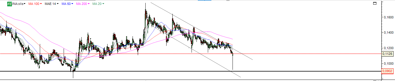 Hoje foi aos 0.09 e conseguiu uma recuperação Intraday , mas a probabilidade maior será voltar ao suporte e negociar nesse patamar .