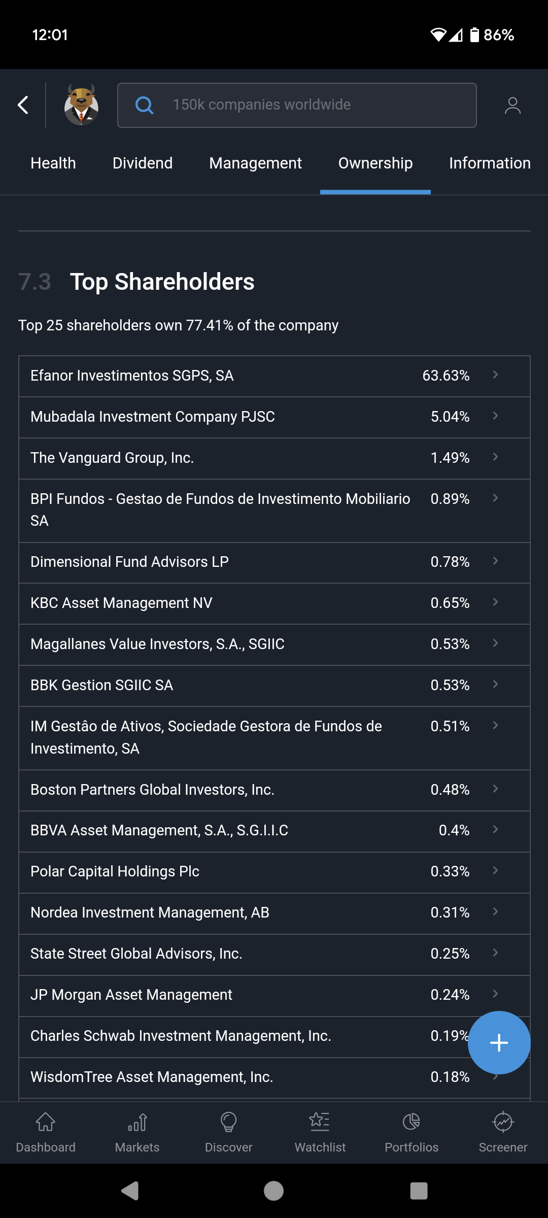 Lisboa_Casino Escreveu:trend=friend Escreveu:Para a Sonae ter 51%, falta pouco mais de 10%. A preços atuais nem chegaria a 200 milhões. Mas felizmente de facto compraram a empresa finlandesa de pets e não deverão estar virados para aí.