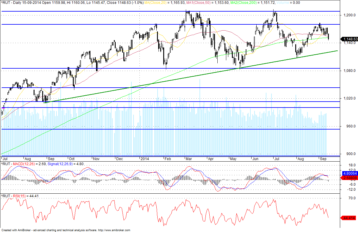 gostaria de trocar umas impressoes sobre o fato do russel estar bastante mais fraco que todos os restantes indices americanos que estão sempre a atualizar novos maximos. Para mim é estranho as small caps estarem bastante longe dos max e estarem cada vez mais fracas e se porventura temos uma frqueza forte nos indices principais o russel parte -se todo.