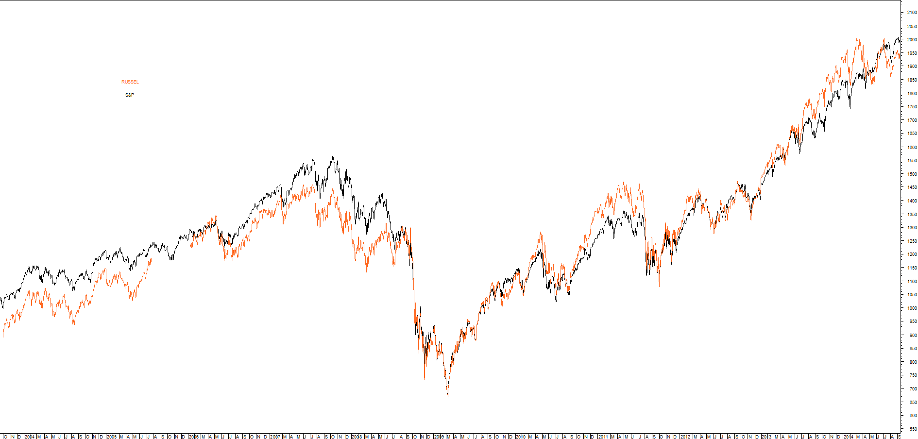 Limonov Escreveu:kafka30 Escreveu:gostaria de trocar umas impressoes sobre o fato do russel estar bastante mais fraco que todos os restantes indices americanos que estão sempre a atualizar novos maximos. Para mim é estranho as small caps estarem bastante longe dos max e estarem cada vez mais fracas e se porventura temos uma frqueza forte nos indices principais o russel parte -se todo.