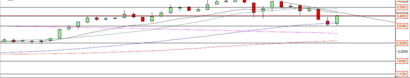 Ultrapassados os dois máximos relativos de referência dos últimos 15 dias ... próxima trave 3.45/3.50 !!
