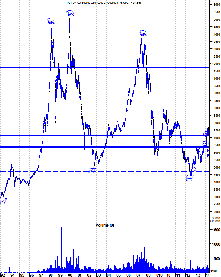 O grafico que o valeaquilino colocou da uma boa perspectiva da coisa. O que diriamos quando em Mar 13' comecaram as quedas, tal como vemos este ano? Repara que houve uma correcao dos 6300 ate os 5400!!