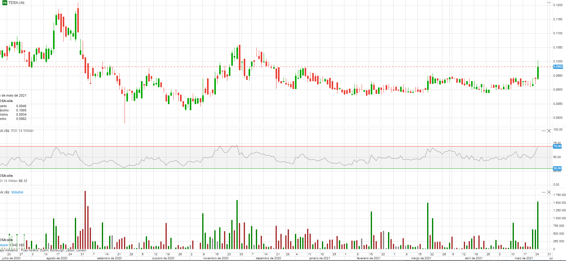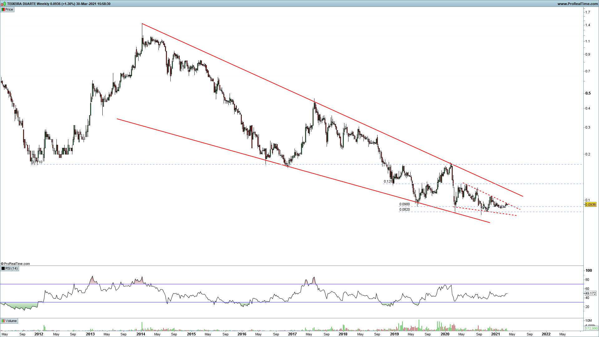 Se passar a zona dos 0,12 a próxima resistência será por volta dos 0,15 é por lá que vou aguardar por ela.