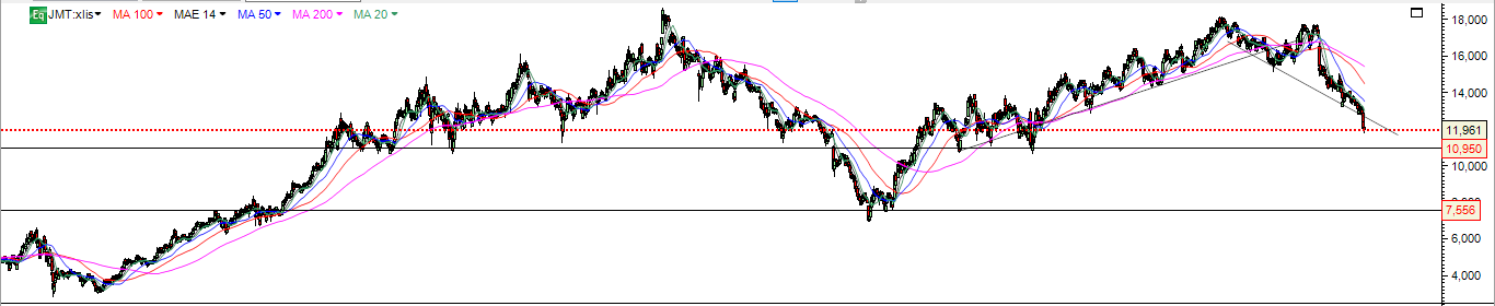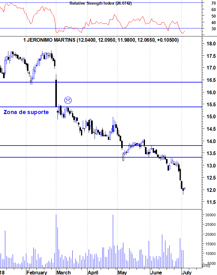 A JMT face aos indicadores técnicos sobrevendidos está aqui a tentar uma potencial recuperação até á zona 12.50-12.60 , antes de provavelmente retomar a correcção , com todas as fracas perspetivas de resultados para dia 25 Julho , e futuras próximas , enunciadas nas analises publicadas na imprensa