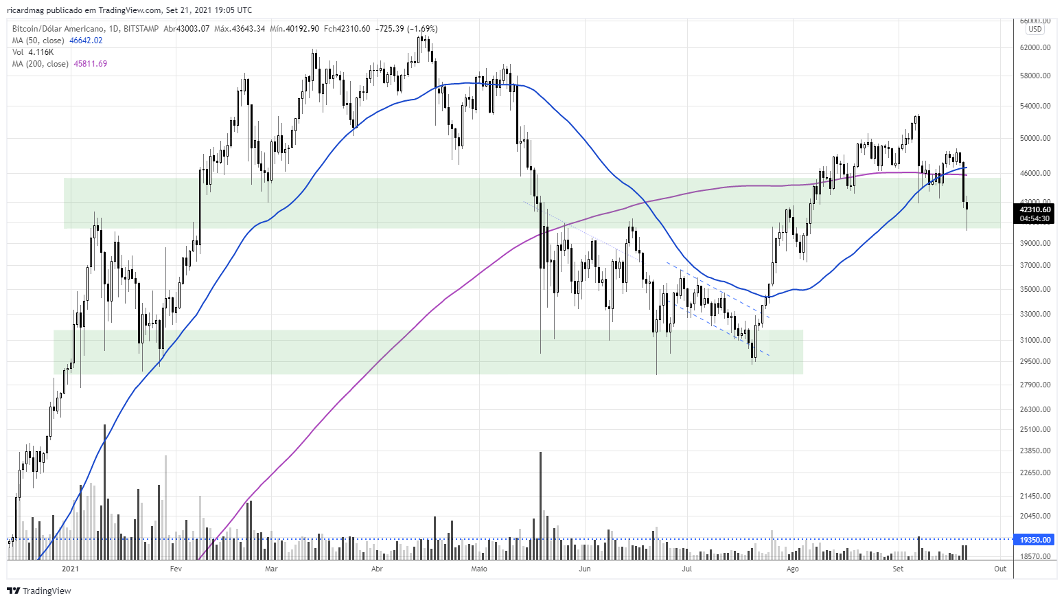 Bitcoin cai com os receios macro e micro (o oposto tb é verdadeiro, Bitcoin sobe com a euforia e Macro-conjuntura positiva) » proibição de transações na China+Evergrande (mercado Chinês era o 3º maior), com o bear market CP USA por causa da inflação, desaceleração económica, hipotético default USA a 18 de outubro (que não vai acontecer) e shut down - que vai acontecer apartir de 1 de Outubro, Setembro é o mês "negativo" dos mercados desde 2008.