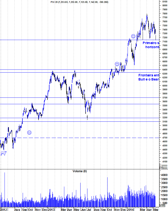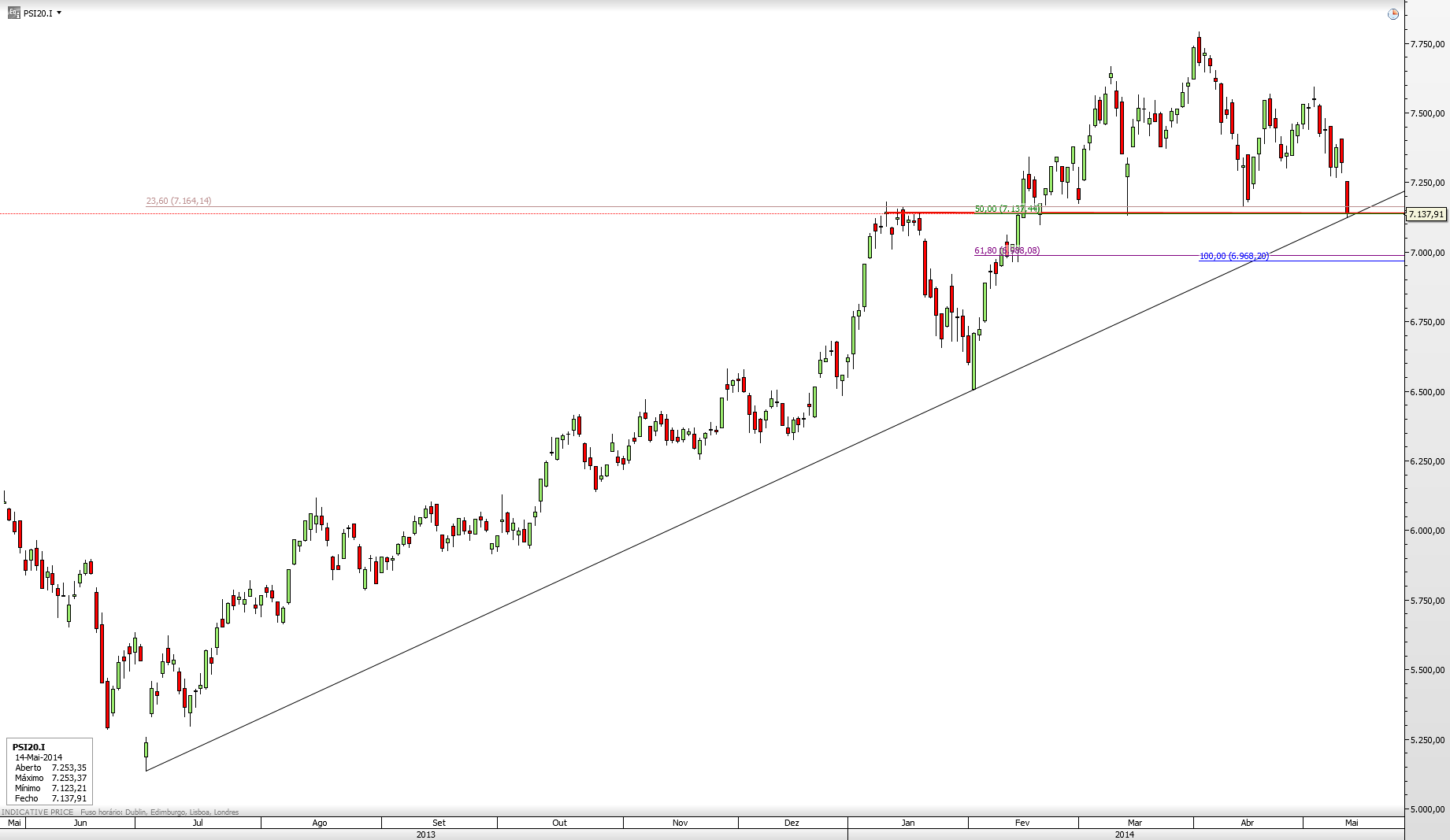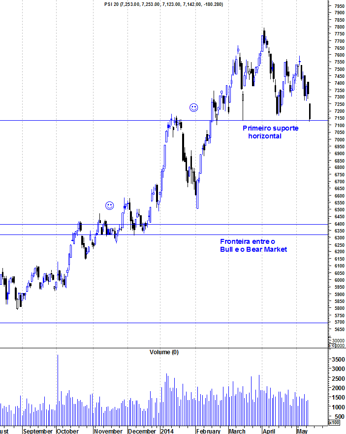 Aqui está o PSI em cima do seu primeiro suporte. Excelente teste a este "Bull Market".