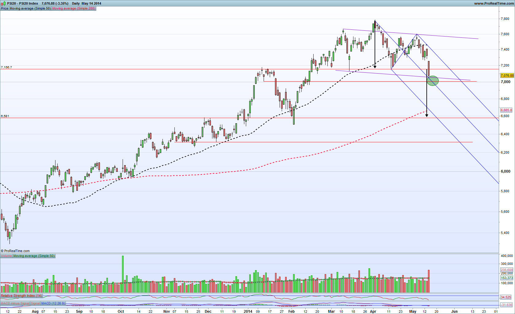 Há duas semanas atrás tinha dito que esperava um padrão técnico de inversão de tendência nesta zona onde se encontra actualmente o Psi20.