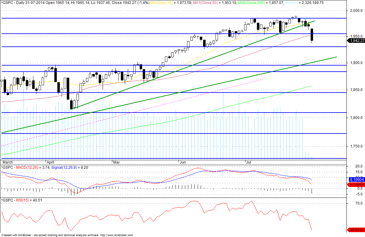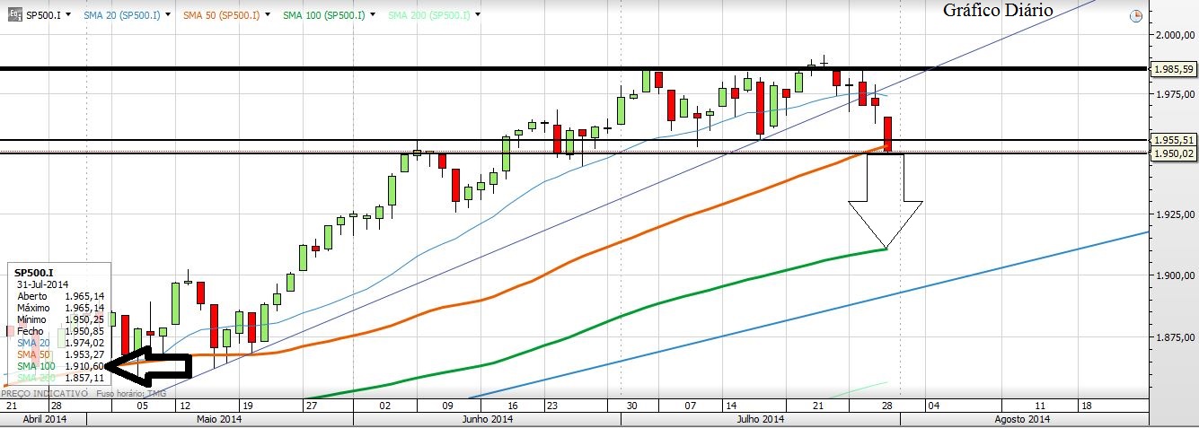 Quanto ao S&P500 depois de fechar em mínimos e com uma vela destas conto que vá já amanhã à MM100 e até possivelmente mais abaixo. Acho até que não deverá haver grandes dúvidas em relação a isso.
