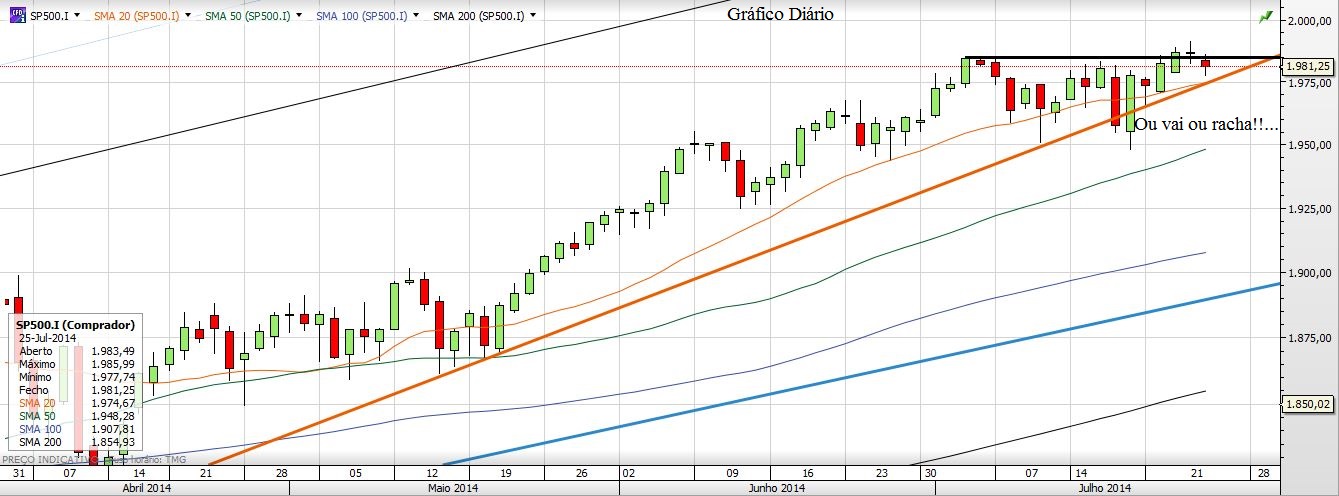 Quanto à Wedge do DJ eu acho que o preço fechou pela primeira vez fora da Wedge. E acho que o destino de queda dos índices americanos está traçado e os dias para isso acontecer estão contados.