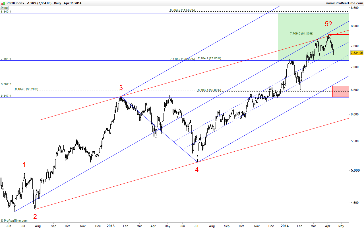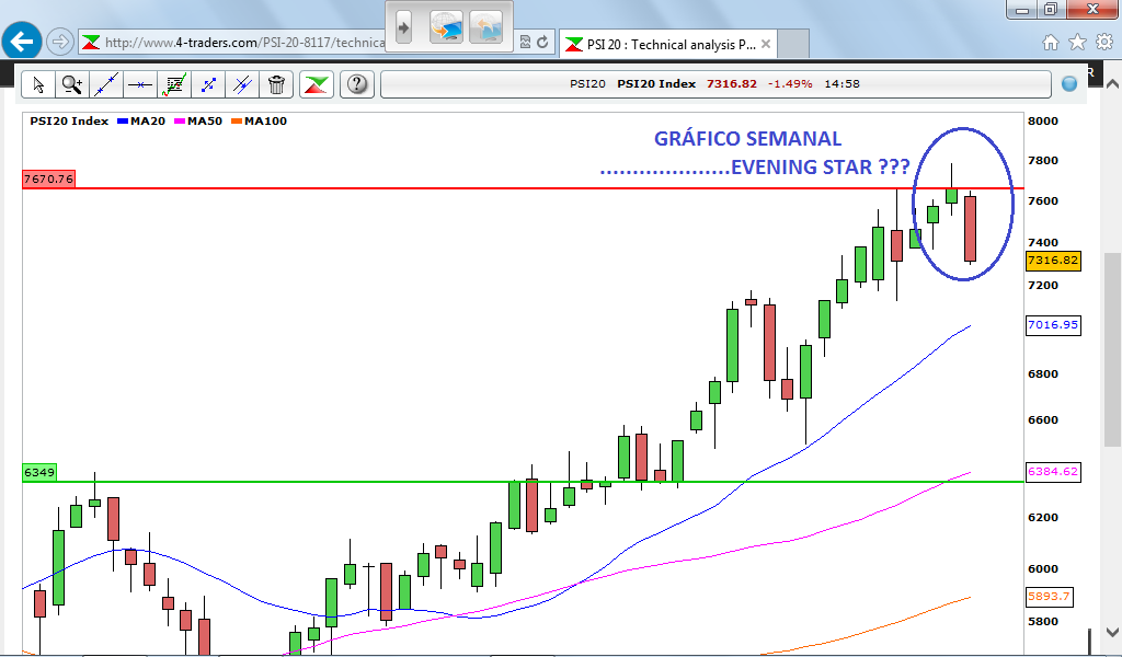 Como nos mercados tudo é possível, se o referido máximo for ultrapassado, a próxima zona a vigiar será em torno dos +/- 8400 pontos.