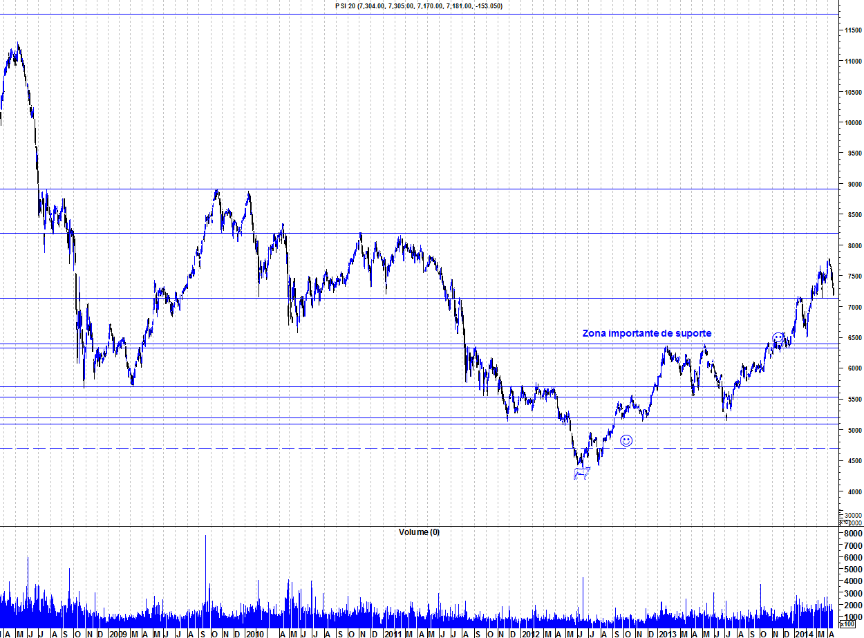Mas também se, por alguma razão, descer os 6300 não existe problema nenhum, o cenário "bull" continuará imaculado (desde que não ultrapasse o mínimo de 2012).