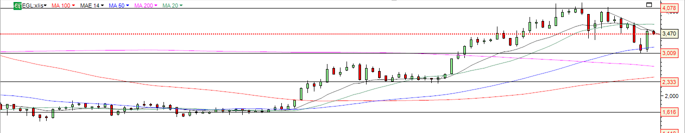 Ainda que com a devida correção em 3.60, continua válido o canal ascendente e com boas perspetivas de ataque aos 3.70/3.80