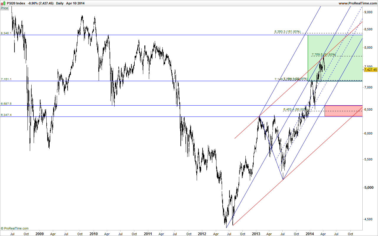 Esta semana subi a minha zona de suporte do PSI20 (valores de fecho semanal) dos 6100-6300 para os 6800-7000.