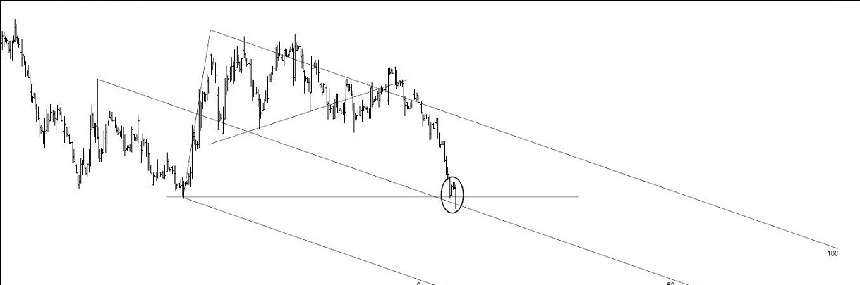 Oportunidade especulativa baseada numa só linha: vendendo o "João Moura" com stoploss acima do pivot relevante e target num qualquer lugar da linha mas pelo menos 3 x stoploss