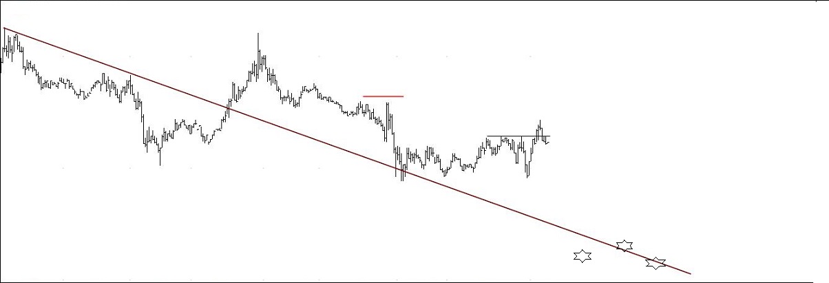 Este negócio serve igualmente para demonstrar algo que já foi referido: à medida que o tempo avança e se encaminha para a linha sem que o preço a atinja, o target vai melhorando; aquilo que no início será no mínimo um negócio com um r:r de 1/3 transformar-se-á num r:r de 1/5, 1/10, etc..