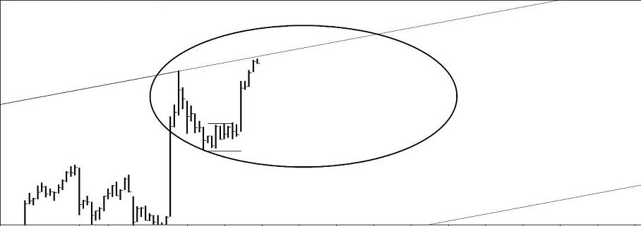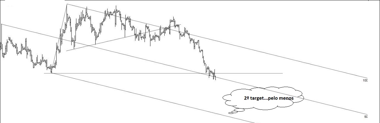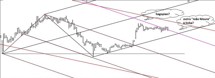 Agora, um conselho: se desenhas um investimento usando certo tipo de linhas, leva-as até ao fim do mundo, no sentido de que é perigoso desenhares outras linhas, porque outras linhas podem sempre ser desenhadas, criando confusão e hesitação. Se com as linhas primitivas o negócio correr mal, será um caso para estudo post mortem (os negócios vencedores também devem ser estudados porque contêm algo que deve ser interiorizado e repetido). Então, sim, podes desenhar o que quiseres e tirarás as devidas ilações. A única situação em que vou desenhando novas linhas prende-se com a revisão do target já se encontrando o negócio em posição de não ser uma perda e concomitantemente com a revisão da stoploss.