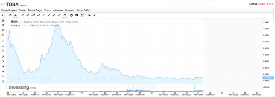 Sinceramente não consigo perceber como atacam quem aqui vem ver o que está à vista de todos, podemos ter o nosso dinheiro em jogo, mas o bom senso tem que prevalecer. Falaram aqui em tanta, mas tanta coisa, chegou a ser falado 1€ por ação, vejam onde ela está, vejam o que mostra o gráfico dos últimos largos anos. Sorte a de quem vendeu "isto" acima dos 0.30, no dia 30 de setembro.