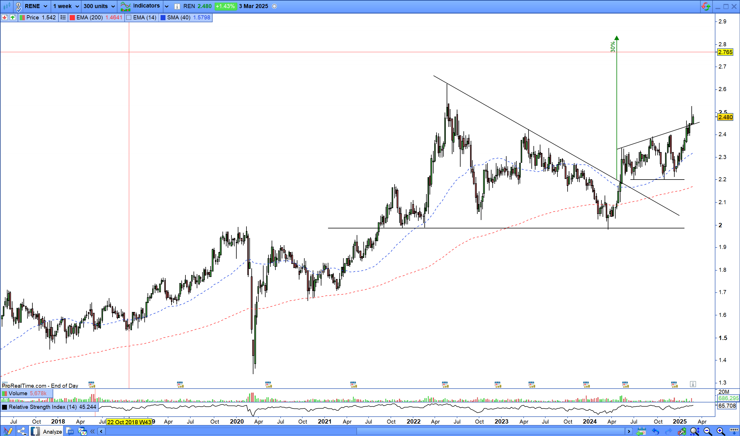 Partilho gráfico da REN onde identifico canal ascendente por intermédio das linhas paralelas ascendentes.