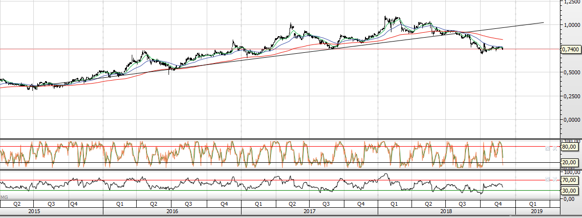 Lá está ela em zona de suporte com os indicadores em baixo,vamos a ver como se comporta nesta zona.