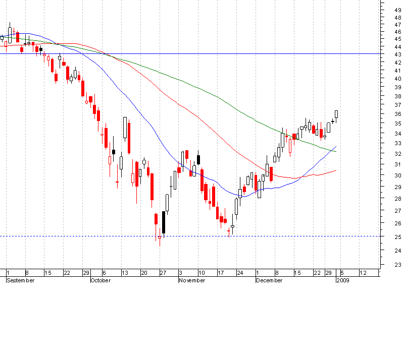 Contudo, antes da quebra em definitivo dos 36 euros não se poderá falar de inversão de longo prazo.
