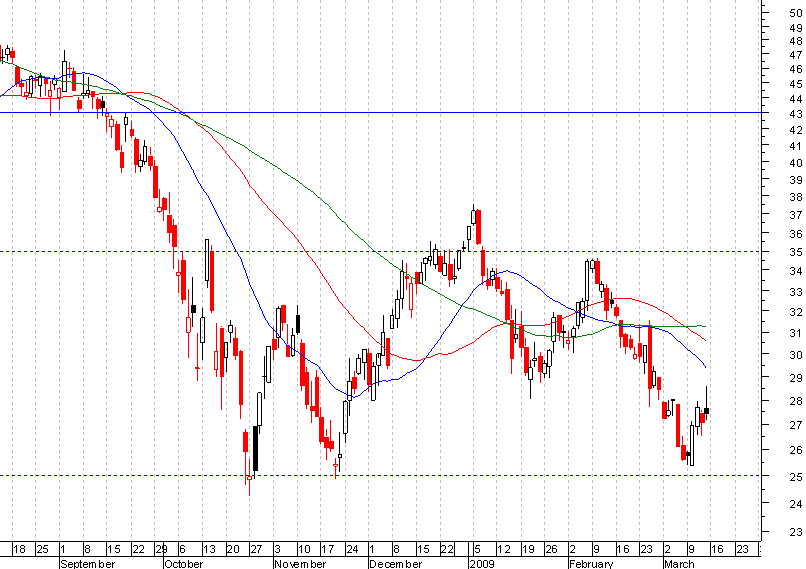 Assim, uma eventual entrada longa terá como objectivo de médio prazo os 35 euros. O stop não deverá ficar muito abaixo dos 25 euros.