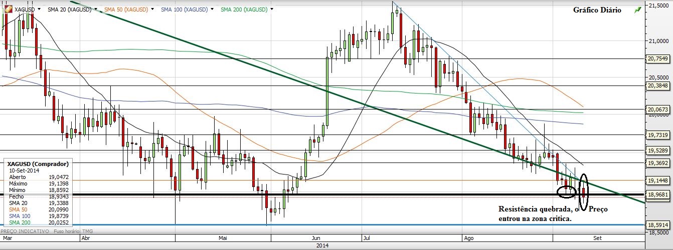 Ouro e Prata continuam o seu caminho descendente, a Prata parece mesmo estar numa queda livre que acelerou mais com a quebra do triângulo descendente. Porém, algures, tanto no Ouro como na Prata, deverá acontecer um ressalto forte, é para esse ressalto eventual que estão viradas as minhas atenções, que se traduzirão no fecho de Curtos e abertura de Longos.