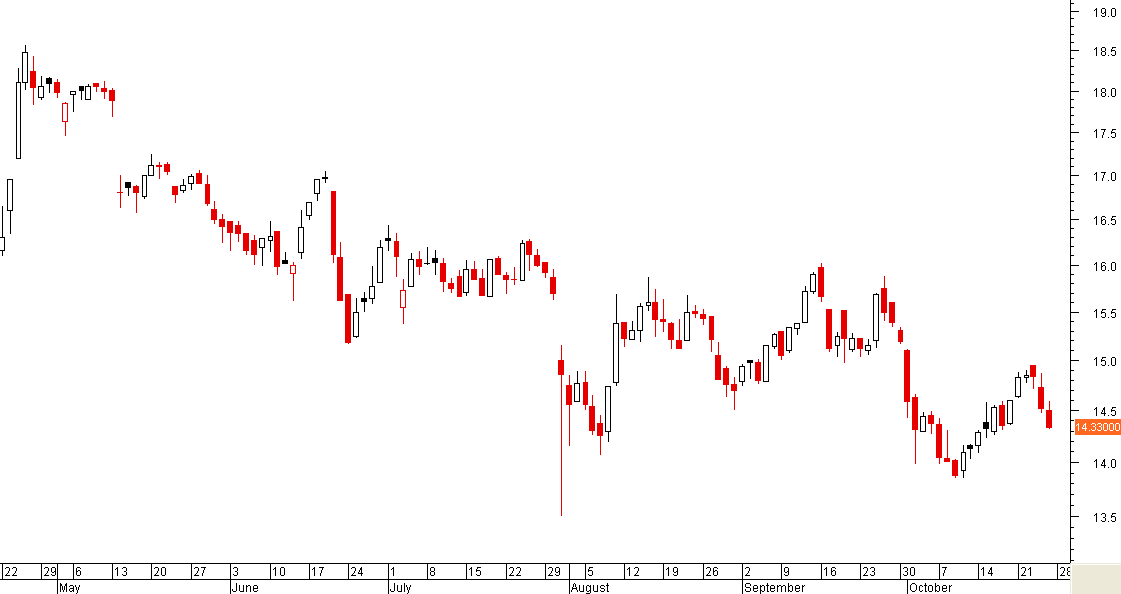 R: aqui é exemplar: os baixos e os altos são sucessivamente mais baixos, pelo que a tendência é inequivocamente descendente, neste horizonte temporal