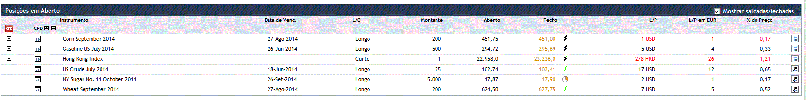 Motivo para o fecho de posições: