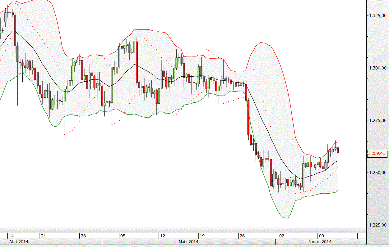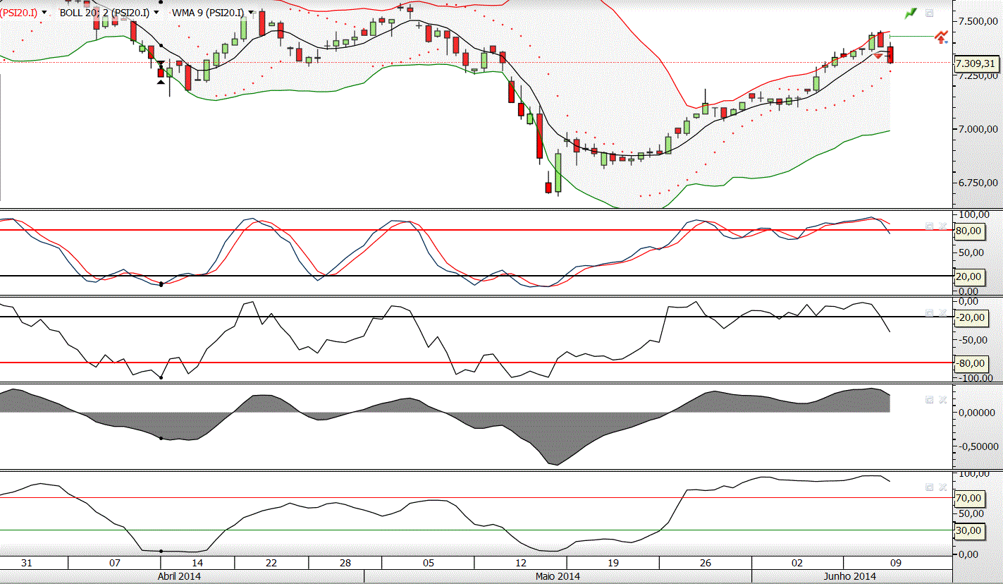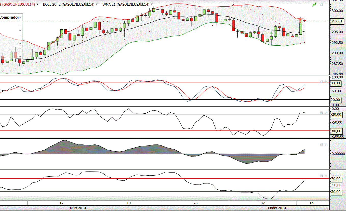 - Toque na Banda Bollinger superior e na última resistência ocorrida a 2.6. (298,47).