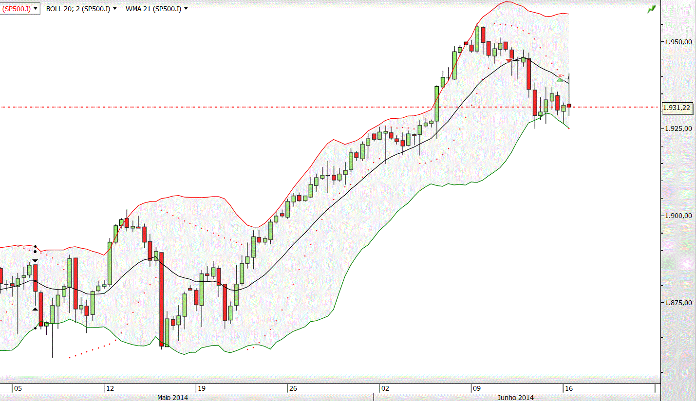 Rompimento, em baixa, da banda bollinger inferior, o que tem por consequência, normalmente, uma posterior lateralização ou subida da cotação.