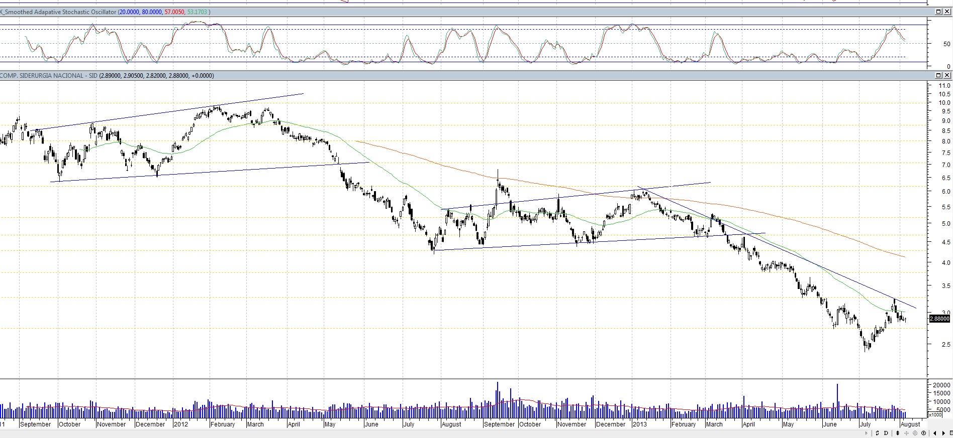 De Agosto a Maio de 2011 andou ali no suporte e resistência, tendo quebrado em baixa.