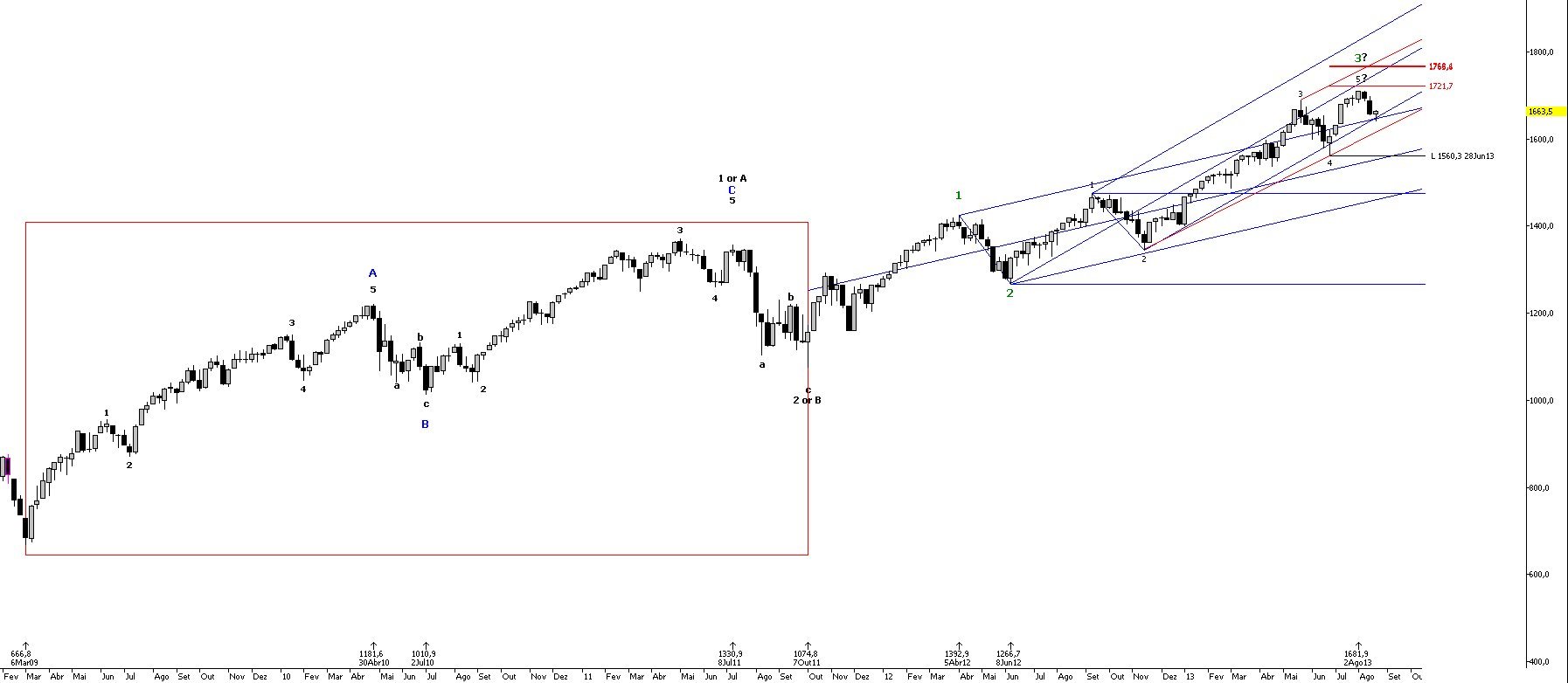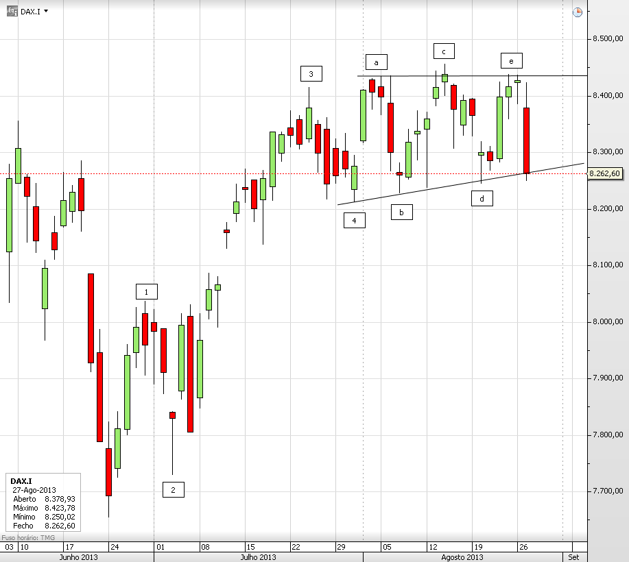 A análise que apresento é para o movimento correctivo iniciado desde o dia 2 de agosto de 2013.
