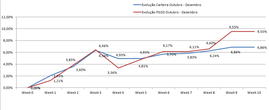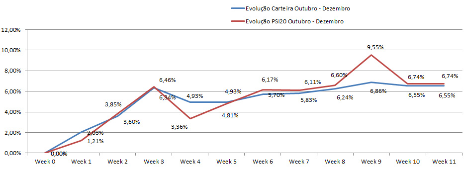 Mas como o objetivo não é tornar-me milionário com a bolsa mas sim trazer o maximo possível arriscando o minimo, esta foi a estratégia que achei mais segura. Não digo que não a poderei mudar alguma coisa, mas só na proxima carteira, ou seja, 01.01.2014... como se costuma dizer, ano novo, vida (estratégia) nova.. quem sabe?