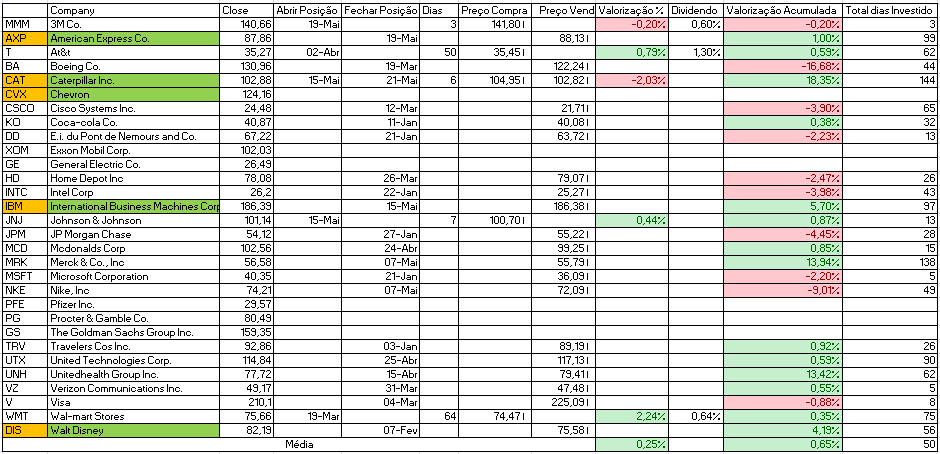 Já para o DJI é só compras: American Express Co., Caterpillar Inc., Chevron, International Business Machines Corp e Walt Disney.