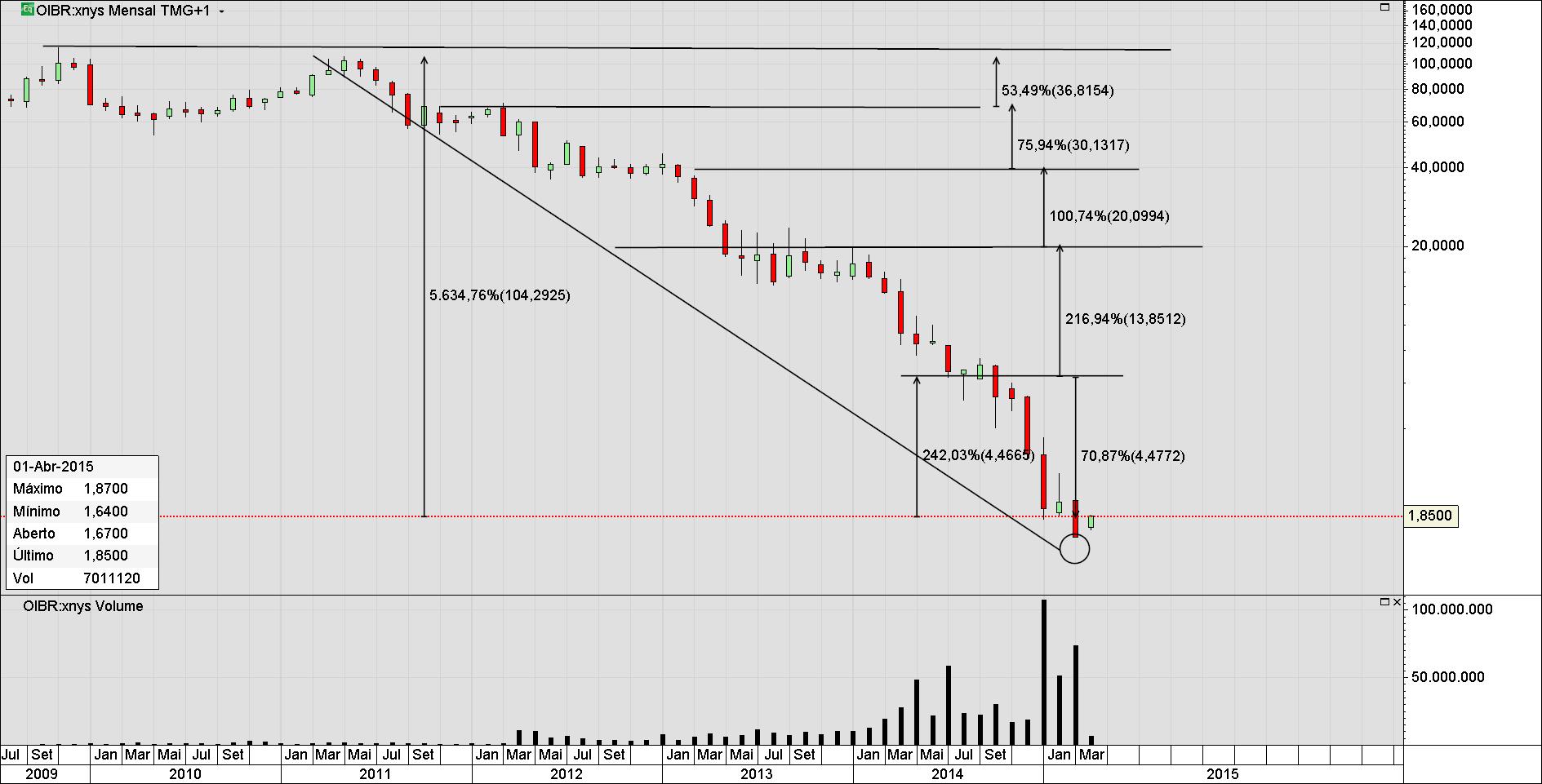 FDPC Escreveu:Então aqui no gráfico mensal esperamos que finalmente o novo fundo da cotada tenha sido atingido abrindo novas perspetivas com a consolidação do setor das teles aqui no Brasil. A continuar assim excelente. Vai abrir com um ligeiro gap-up, há insiders a comprar, hedeg funds institucionais e superinvestidores. fonte: twitter $OIBR. A próxima semana é que saberemos como vai ser se repete-se a devolução dos últimos ganhos ao mercado e ainda somando mais um novo fundo, não me parece, porém...![]()