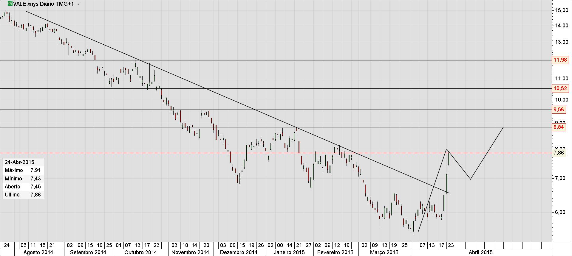 Mais VALE entrar na tendência do que lutar contra ela. No gráfico diário a tendência já está rompida porém no Mensal está para romper.