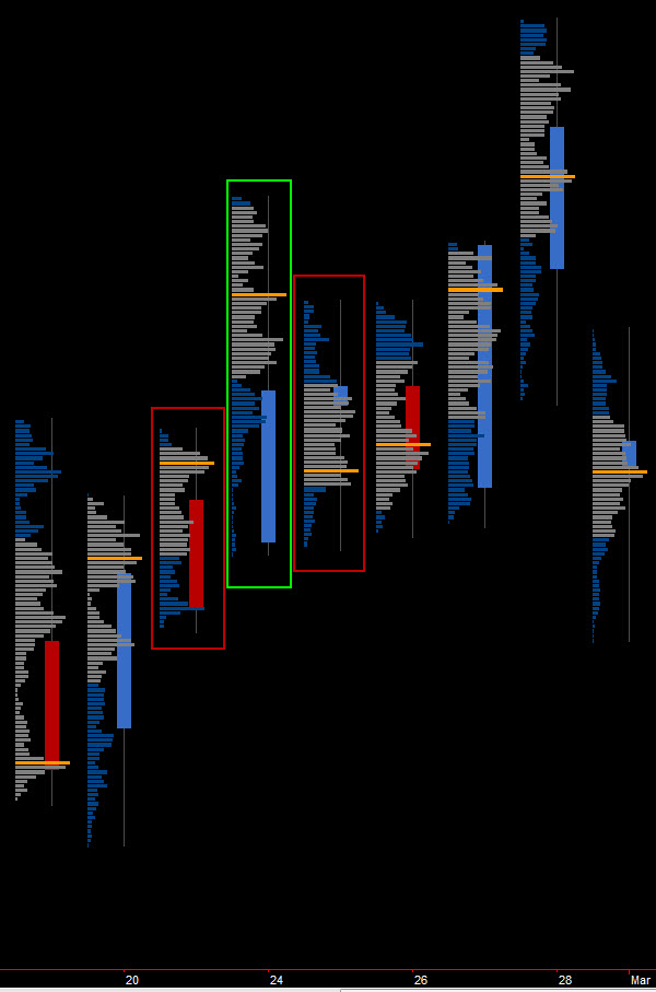 Obrigado pela tua paciência mas agora estou em crer que começo a perceber melhor o conceito principal que está por trás do seguimento deste método. No fundo procuras definir suportes e resistências de curto prazo nas zonas "in balance", desprezando eventuais excursões a extremos que o mercado tem vindo a rejeitar durante a sessão.